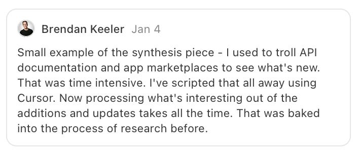 I wrote previously that synthesis is a new bottleneck because I observed my production capacity, expanding as I adopted coding agents[5] for more and more tasks.